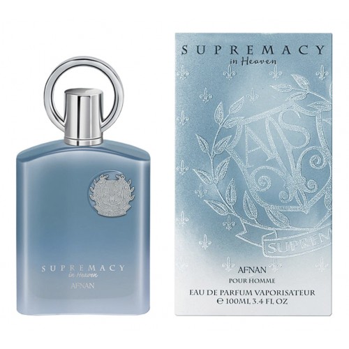 Supremacy In Heaven — освежающий и бодрящий мужской фужерно-цитрусовый аромат с мягкими древесными оттенками, выпущенный в 2018 году известным арабским парфюмерным брендом Afnan. Ароматическая композиция с названием «Небесный» покоряет свежестью и легкостью звучания. Она станет идеальным дополнением мужского образа, внося в серые будни ощущение чистоты, свежести и гармонии с окружающим миром. В верхнем аккорде ароматическая композиция раскрывается восхитительной цитрусовой свежестью бергамота и сладкого солнечного мандарина. В сердце парфюма освежающий шелковисто-пряный аромат зеленого чая соединяется с пикантными терпковатыми оттенками спелых ягод черной смородины. Тогда как финальный аккорд дарит теплый и чувственный ароматический шлейф, сплетенный из древесных нот и бархатисто-сливочного сандала, украшенных мягкими мускусными переливами.