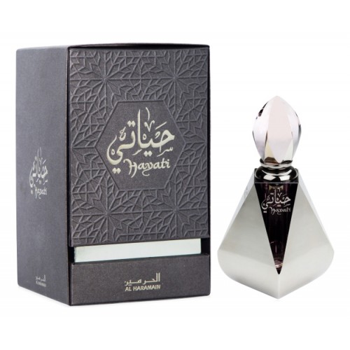 Hayati Al Haramain Perfumes - это аромат для мужчин и женщин, принадлежит к группе ароматов восточные цветочные. Верхние ноты: Мускус и Амбра; ноты сердца: Мускус, роза и Сахар; ноты базы: Мускус, Древесные ноты и дерево Агар.