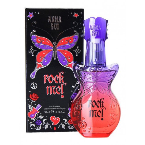 Известный бренд Anna Sui представляет яркую, эпатажную новинку - Rock Me! («Рок Ми!»), вышедшую в свет в 2009 году. Это современный, клубный аромат с запоминающимся, смелым благоуханием. Такой парфюм будет очень кстати для вечеринки в шумной дружеской компании, с любимыми мелодиями и океаном веселья.Таким же необычайно привлекательным, страстным ароматом обладает парфюм Live Your Dream, созданный этим же брендом. Парфюм Rock Me придется по душе девушкам современным, смелым и амбициозным, любящим экстравагантные наряды и музыку в стиле рок-н-ролл. Эти духи хорошо носить с черной кожей, и черным лаком для ногтей, броским макияжем. В нем сплелись страсть и азарт, загадочность и бунтарское настроение.Парфюмерная композиция состоит из нот кедра, ванили, жасмина, апельсина, амбры, персика, груши, жимолости, кувшинки.