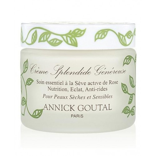 Annick Goutal Creme Splendide Genereuse - крем с антивозрастным эффектом для сухой кожи от Annick Goutal. Средство используется для ухода в дневное время за сухой кожей лица и шеи. Он обеспечит замечательное питание, реструктуризирует и восстанавливает клетки кожи. Кожа становится более гладкая. Крем способствует сокращению морщин. Creme Splendide Genereuse (крем питательный) дает на весь день чувство комфорта, прекрасно впитывается в кожу. Ежедневное использование этого питательного крема способствует омоложению кожи. Она приобретает упругость и сияние. Для ухода за кожей в ночное время используется антивозрастной крем Annick Goutal Creme Splendide Nuit, который обеспечивает глубокове восстановление кожи в ночное время. В состав крема Creme Splendide Genereuse входит мощный антиоксидант - вытяжка мимозы, масло жожоба, макадамии, активный сок розы. Последний компонент - запатентовано брендом Annick Goutal.