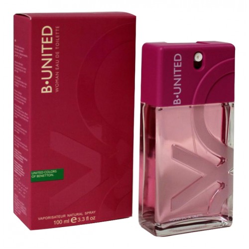 Женский аромат Benetton United B. Woman («Бенеттон Би Юнайтед Вуман») входит в группу восточно-цветочных запахов. Парфюм появился в 2004 году. Дерзкий, чувственный аромат создан для молодых женщин, которые любят приключения. Специально для них были собраны редкие сорта цветов в разных частях света.В паре с этим женским ароматом был выпущен мужской парфюм Benetton B. United Man.Верхние ноты парфюмерной композиции Benetton United B. Woman образуют черная смородина, бергамот и красные ягоды- сердечные ноты - апельсин, белая фрезия, пион, роза, цветок хлопка- нижние ноты - сандал, мускус, малина, белый кедр и ваниль. Необычное сочетание ароматов будоражит и бодрит, раскрасив будни в яркие и сочные краски.