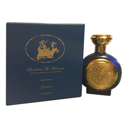 Gracious – страстный, самобытный, загадочный парфюм для мужчин и женщин, выпущенный в рамках «Голубой коллекции» ароматов, посвященной Великобритании, ее достояниям и историческим событиям. Аромат Gracious выпущен брендом Boadicea The Victorious в 2015 году. В переводе его название означает «Милостивый», олицетворяет чувство собственного величия и достоинства, олицетворяет силу и доблесть Великобритании. Аромат придет образу своего владельца благородство и английскую сдержанность, окружает теплом, излучает таинственность и магию. В аромате удачно сочетаются пьянящие, шелковисто-пряные тона турецкой розы и мягкие, бархатные аккорды дамасской розы, сплетающиеся в гармоничный союз с благовонными, таинственными мотивами удовой древесины, мягкими, обволакивающими тонами нежной, проникновенной амбры, бальзамически-пряными аккордами бензоина, пикантными смолистыми тонами пачули, теплыми, притягательными тонами кашмерана, анималистическими нотками мускуса и тонкими проникновенными ванильными акцентами.