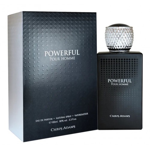 Powerful — яркий, стильный и харизматичный мужской древесно-цветочный парфюм, выпущенный в 2019 году французским парфюмерным брендом Chris Adams. Ароматическая композиция приглашает почувствовать силу, наэлектризованную и заряжающую энергией, пробуждающую душу мужеством и мудростью. Аромат захватывает внимание древесными тонами и нотками черного перца, запахами апельсина и розы, смешивающимися с нюансами амбры и сандалового дерева. Стильный прямоугольный флакон угольно-черного цвета украшен роскошным серебристым колпачком, подчеркивающим особую красоту заключенного в нем парфюма. В верхнем аккорде свежесть сочной зелени переплетается с игристой прохладой цитрусовых нот, запахом сочной сливы и ананаса с яркими перечными акцентами. В сердце композиции звучит яркий букет цветочных нот герани, розы, жасмина и ландыша, чья сладость компенсируется финальным аккордом, сплетенным из бархатисто-сливочного сандала, хвойно-дымного кедра, белого мускуса и чуть смолистых оттенков благородного янтаря.