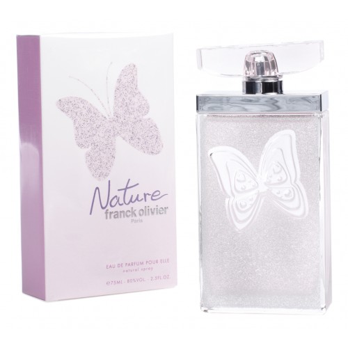 Frank Oliver Nature («Франк Оливье. Природа») - один из самых волшебных женских ароматов, вышедших под брендом Frank Oliver в 2008 году. Даже само название парфюма говорит о том, что его благоухание способно перенести нас к далеким берегам и странам, приглашая совершить путешествие по весенним лугам, через легкую дымку тропических лесов, таинственных и неизведанных.Frank Oliver Nature поможет раскрыть свою сущность, стать собой, научит мечтать и воплощать мечтания в жизнь, подарит необычайный заряд положительной энергии. Кем бы Вы ни были в душе - трепетной лесной нимфой, или гибкой пантерой, выслеживающей добычу, этот аромат окружит Вас аурой истинного блаженства. Похожие ноты свежести есть еще в одном аромате - Ange ou Demon Le Secret от известного дома моды Givenchy.Парфюмерная композиция аромата состоит из нот бергамота, кипариса, кардамона, подчеркнутых аккордами лимона, лаванды, персика. Великолепие композиции очаровывает шлейфом из нот мускуса и табачного листа.