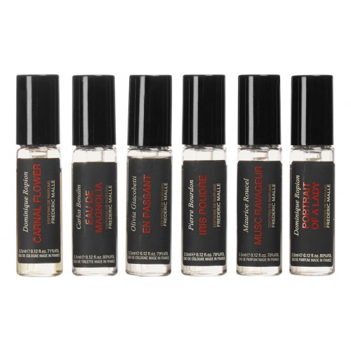 Французский дом нишевой парфюмерии Frederic Malle представляет комплект ароматических композиций, который позволит дополнить любой образ, подчеркнуть любое настроение, подарить разные эмоции. Набор состоит из шести компактных миниатюр, емкостью 3,5мл.