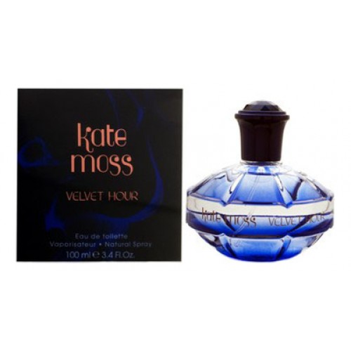 Kate Moss Velvet Hour («Кейт Мосс Бархатный час»). Этот загадочный женский аромат был представлен в 2008 году. Автором парфюмерной композиции стал Emilie (Bevierre) Copperman.Оригинальный флакон округлой формы насыщенного синего цвета венчает черный колпачок. Флакон упакован в коробку, выполненную в синих и черных тонах.Первый аромат, который выпустила Кейт Мосс, был представлен в 2007 году. Он назывался Kate Moss Kate.Композиция цветочного, древесно-мускусного аромата открывается нотами олибанума, фрезии и перца, которые дополняются нотами листьев пачули и мускатного ореха, оставляя магический шлейф из нот сандалового дерева, амбры и черного дерева.