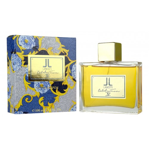 Lancetti Celebration IV («Ланчетти. Праздник IV») - неповторимый парфюм, созданный для соблазнительных женщин. Относится к семейству восточных древесных ароматов. Парфюм был создан к пятидесятилетнему юбилею компании Lancetti в 2012 году и является последним из четырех ароматов.Коробка, в которую упакован флакон Celebration IV, сделана в синих, золотых и черных тонах, напоминающих цвет неба ночью. Аромат поможет своей обладательнице стать царицей темного времени суток. В этой юбилейной коллекции ароматов вы также найдете парфюм Celebration I.Мелодия аромата Lancetti Celebration IV начинает свое звучание верхними нотами шафрана и бергамота. В сердце слышны аккорды лабданума и жасмина. В завершении остаются ноты ветивера, дерева агар и амбры.