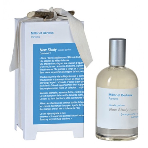 В феврале 2017 года нишевая линия французского бренда Miller et Bertaux пополнилась очередным филигранным творением - New Study. Аромат позиционирован, как открытка с духами со средиземноморского острова. Он создает атмосферу умиротворения и беззаботности, позволяет мысленно перенестись на прекрасный экзотичный безлюдный остров, без суеты, забот и шумных городских будней. Парфюм принадлежит к категории цитрусовых и предназначен для ношения мужчинам и женщинам. Аромат вырывается наружу тайфуном цитрусовых аккордов грейпфрута, лимона и апельсина, постепенно смешиваясь с медовым ароматом белых цветов, самобытной сладостью спелого инжира и экзотичным запахом кокосового молока. В финале окружают беззаботностью релаксирующие аккорды благородного дерева и свежего ароматного сена, вызывающие самые приятные ассоциации и воспоминания.