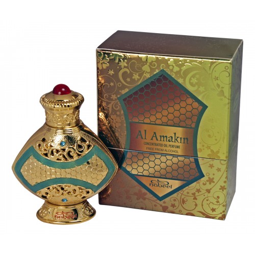 Al Amakin - роскошные масляные духи премиум-класса для женщин и мужчин выпущены брендом Nabeel в 2010 году. Насыщенный восточный аромат освежает прохладными цитрусовыми нотами, завораживает цветочными и бархатными оттенками, интригуя чувственными и сладкими нюансами великолепных эфирных масел высочайшего качества. Острые свежие ноты сочной мякоти лимона открывают ароматическую композицию неординарных духов Al Amakin, мягко переплетаются с бархатистыми оттенками нежной ночной фиалки и благородным запахом кожи на фоне проникающих таинственных аккордов экзотического эфирного масла пачули, что придает аромату насыщенность и особую глубину. Смолистое хвойное звучание придают шлейфу композиции драгоценные ноты масла белого кедра и бобов тонка, которые гармонично смягчены сладким аккордом карамели и чувственным мускусным оттенком. Великолепный флакон масляных духов выполнен с поистине королевской восточной роскошью.