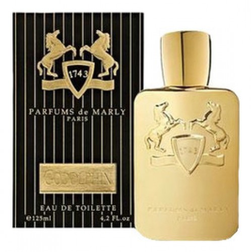 Parfums de Marly Godolphin («Прфюмс де Марли. Годольфин»)- аромат для мужчин, созданный в 2011 году. Это благородный аромат, соединивший в себе пряные, цветочные и древесные ноты. Туалетная вода находится во флаконе золотистого цвета, имеющего традиционную округлую прямоугольную форму. Упаковку украшает эмблема двух скакунов, вставших на дыбы.Godolphin назван в честь знаменитого жеребца, неоднократного лидера скачек, явившегося прародителем легендарных арабских скакунов. Это аромат для спокойных, благородных и уверенных в себе мужчин, чувствующих свою уникальность и аристократичность. Также поклонникам классики стоит попробовать аромат Penhaligon's Esprit du Roi.Парфюмерная композиция содержит ноты: шафрана, кипариса, тимьяна, зелени, чая, ириса, жасмина, кожи, ветивера, кедра, мускуса, амбры и ванили.