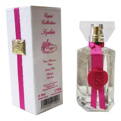 Sophia – мягкий, волнующий и манящий женский цветочно-шипровый аромат, выпущенный в 2013 году французским нишевым парфюмерным брендом Prudence Paris Capri Collection. Парфюм одет в роскошный, сверкающий гранями розовый флакончик, украшенный золотистым изображением прекрасной русалки. Композиция начинает звучание с нежной, чуть пряной свежести листьев черной смородины в хороводе искорок пряного розового перца. Сердечный аккорд распахивается волшебным созвучием игристой белой фрезии, пьянящего терпковато-пряного жасмина и бархатисто-медовой розы. А когда цветочный аккорд стихает, незаметно растворяясь в пространстве, ему на смену приходит шелковисто-пряный запах листьев пачули, омываемый нежными, бархатистыми струйками ласкового белого мускуса.
