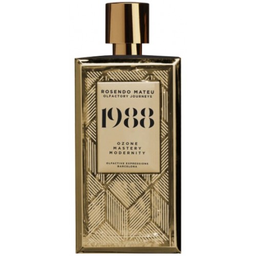 В конце 80-х годов Нью-Йорк стал главным центром творческой парфюмерии в мире. Место, где Розендо нашел современность, которая дала ему чувство индивидуальной силы и свободы. Аромат 1988 представляет обретенные парфюмером уверенность в себе и мастерство, выраженные в морском аромате. Тональность аромата отражает спокойствие океана, новую жизненную силу, которая приглашает нас в путешествие самопознания. Композиция Rosendo Mateu 1988 представляет собой тонкий баланс цитрусовых нот и свежих оттенков росы, которые уступают место средним нотам сияющего озона, горьковато-соленой морской воды, морской соли и пряному запаху древесины, выброшенной волнами на берег. Завершают звучание парфюма мягкие оттенки белого мускуса, тонкий намек на специи и более яркий и насыщенный запах вымоченной в соленой воде древесины.
