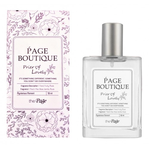 The Page Buotique Prier Of Lovely –мягкий и бархатистый по звучанию цветочно-фруктовый парфюм, созданный для прекрасной половины человечества южнокорейским косметическим домом Seсret Key. Мягкий, струящийся и переливчатый аромат чем-то напоминает драгоценный бархат, нежно и лаково прикасаясь к коже и создавая вокруг нее утонченную ароматическую ауру. Звучание парфюма открывается с бархатисто-медового аромата персика и прохлады спелой сочной груши. Нежный аромат персика медленно переливается в сердечный аккорд, где продолжает звучать в дуэте с утонченным шелковисто-пряным запахом розы. А когда чудесные цветочные ноты растворяются в пространстве, на память о них парфюм одаривает нежнейшим ароматическим шлейфом, сотканным из обольстительного мускуса и утонченной сладости ванили.