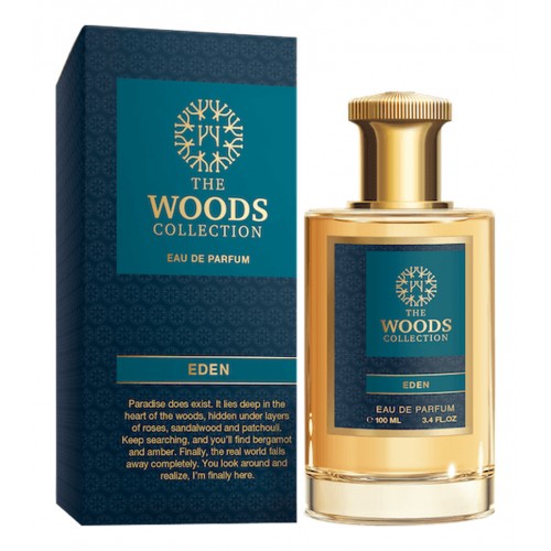 The Woods Collection Eden — парфюмерная вода с восточным ароматом для женщин и мужчин, выпущена в 2018 году молодым азиатским парфюмерным брендом The Woods Collection из ОАЭ. Энергичный мечтательный аромат Eden из коллекции бренда посвященной лесу. Он словно солнечный свет летнего леса, рай, который несет радость существования. Яркими свежими, сверкающими на солнце, цитрусовыми аккордами бергамота, пьянящими цветочными нотами бархатисто-пряной медовой розы, смолистыми согревающими оттенками янтаря, восточными пряными акцентами магической таинственной пачули и нежного сливочного сандала характерна уникальная натуральная парфюмерная композиция The Woods Collection Eden, которая заключена в элегантный флакон, выполненный в утонченном восточном стиле.