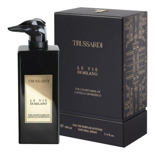 В верхнем аккорде композиции The Courtyards Of Castello Sforzesco цитрусовая свежесть бергамота соединяется с дымно-ароматическими мотивами ладана и теплой пряностью шафрана. В сердечном аккорде звучит восхитительный дуэт цветочных нот двух сортов роз — сентифорлии и альбы. Сладость меда, пряно-перечные ноты герани и нежные оттенки розового перца придают сердечному аккорду Trussardi The Courtyards Of Castello Sforzesco особу мягкость и глубину звучания. Отзвучав, цветочный аккорд медленно растворяется в пространстве, оставляя после себя мягкое ольфакторное послевкусие из теплых древесных нот, ванильно-смолистого бензоина и почти мистического ладана.