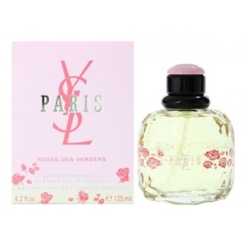 Paris Roses des Vergers – это коллекционная версия женской композиции Paris. Авторами элегантного и необычайно женственного букета стали Sophia Grojsman, Laurent Bruyere с Dominique Ropion. Фруктовый цветочный парфюм 2006 года выпуска открывается нежным благоуханием цикламена на бархатистом зеленом фоне смородиновых листьев. Пасторальное звучание прекрасного цветка великолепно подчеркивает романтические переливы розы и шиповника. Выразительные и грациозные мотивы красиво дополнены трепетной нежностью черешневого и грушевого цвета, чтобы неспешно раствориться в шелковистых объятьях сандаловой древесины и мускуса. Композиция: цикламен, лист черной смородины, роза, грушевый цвет, мускус, шиповник, цветок черешни, древесные ноты, сандаловое дерево.